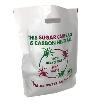 Sugar cane bags are made from sugar cane polymer, a waste product, meaning they’re highly sustainable. They’re identical to polythene carrier bags once made, meaning: